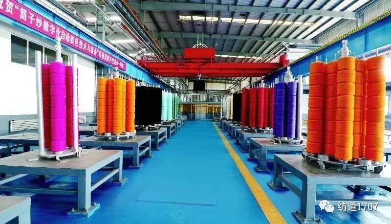 Entering the dyeing workshop of Shandong Kangpingna Group Co., Ltd., a few workers press the button in the control room, and the entire printing and dyeing production line can automatically start to work. The dyed cheeses are neatly placed on the shelves, realizing the whole process of intelligence.