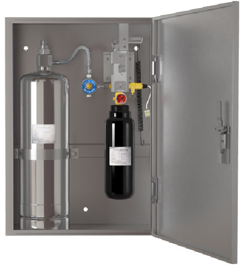 Kitchen equipment fire extinguishing device (mechanically activated)