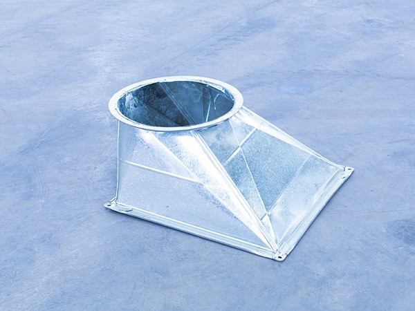 The square to round joint is an indispensable accessory in the installation process of the ventilation duct project. The air outlet of the fan is usually square, and it needs to be connected to the round pipe or square pipe after the square to round diameter reduction.