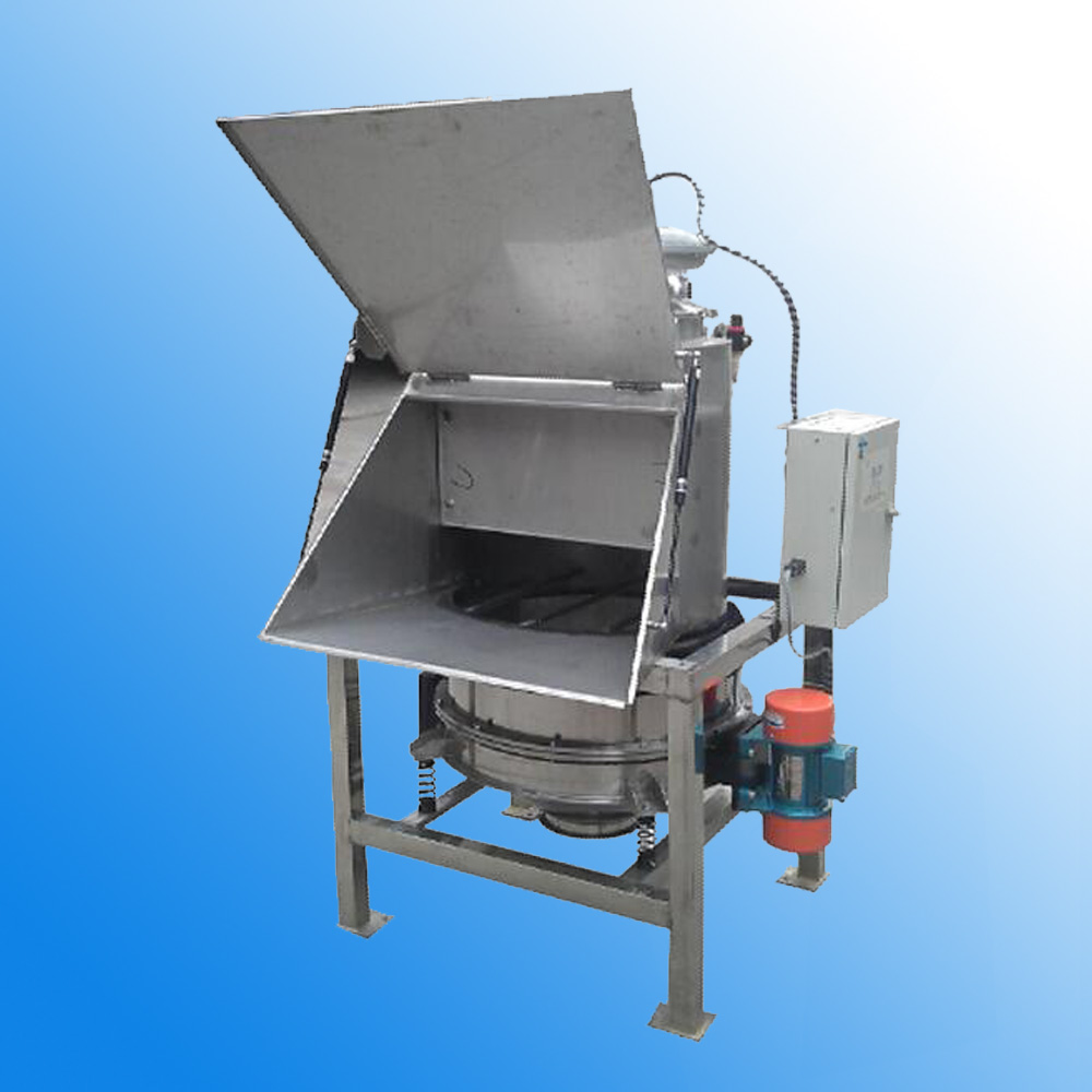 Dumping station (also known as bag dumping station and manual unpacking machine) is a manual equipment used to manually dump small bags of powder or granular materials into the downstream hopper. It completes the bag unloading by gravity through manual bag unloading and automatic dumping. The filter cleaning device and exhaust fan are installed inside the equipment, so that the dust generated in the operation can be filtered by the dust removal device, so that people can easily work in a clean environment.