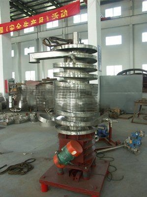 wet material enters the spiral bed from the feeding port on the top, and under the action of the circumferential excitation force and gravity, the material jumps along the spiral bed from top to bottom to the bottom; at the same time, clean hot air enters from the bottom of the spiral bed, After sufficient heat and mass transfer with the material distributed on the bed, it is discharged from the top moisture outlet. So that the material achieves the purpose of drying.