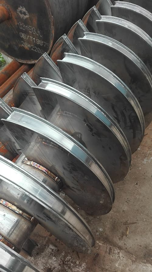 The main heat transfer component of the hollow blade dryer is the shovel-shaped blades, which are densely arranged in accordance with the specified interval and cross arranged on the fixed rotation axis, so the heat transfer per unit volume is relatively high.