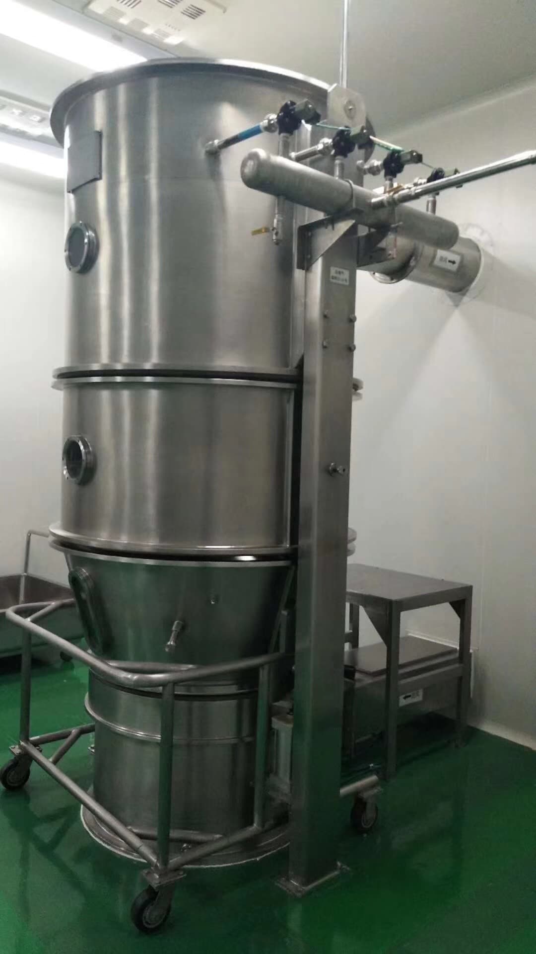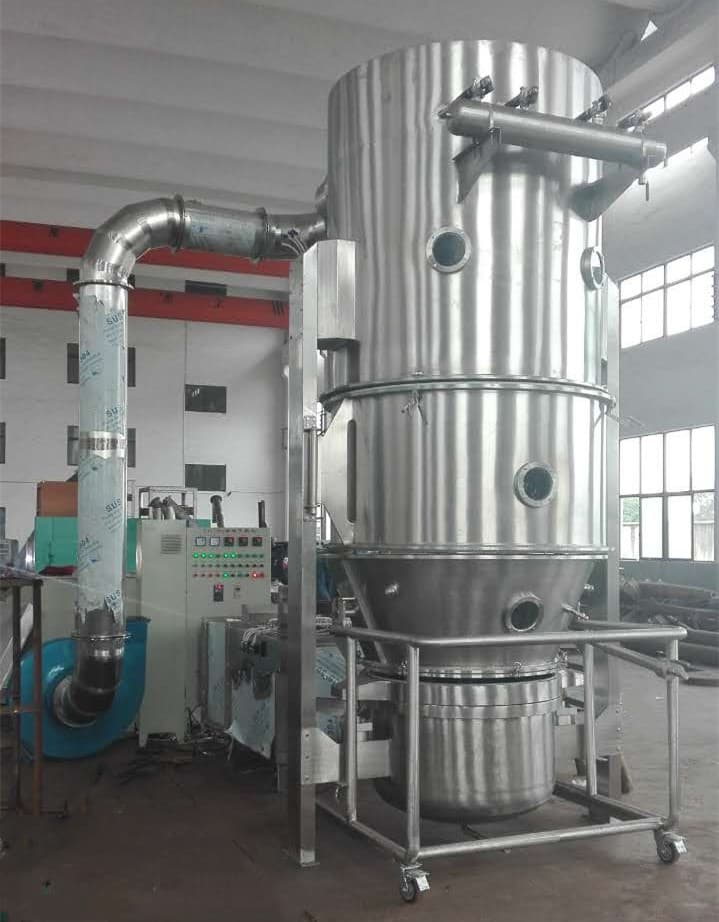 The principle of the boiling granulation dryer is that the material powder particles are in an annular fluidized state in the raw material container (fluidized bed). They are preheated and mixed by the purified heated air, and the adhesive solution is atomized and sprayed, so that a number of particles gather into agglomerates containing adhesive. Due to the continuous drying of the hot air on the material, the moisture in the agglomerates evaporates, and the adhesive solidifies. This process is repeated.
