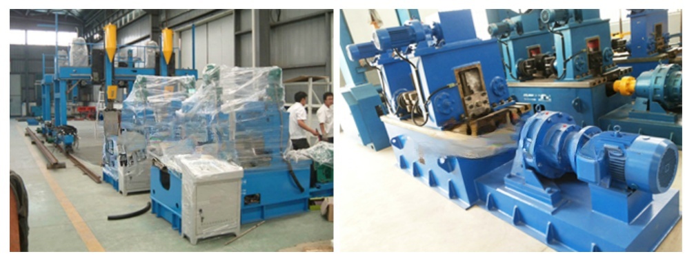 This machine is specially used for the H-beam flange distortion straightening, which includes hydraulic and mechanical straightening type. The structure of mechanical flange straightening machine is simple, with convenient and reliable operation which used for semi-automatic H-beam production line. The hydraulic type straightening has strong straightening force and high automation which usually used for full automatic H-beam production line. The straightening roller and powered roller is good alloy steel, which are made after heat-treating with long life using. Hydraulic type straightening machine is used for the angle distortion straightening of the H-beam with large thickness. Hydraulic cylinder presses from down side to up side , which has strong force and high driving torque and with good straightening efficiency and good quality. This machine is widely used for the fire electric furnace,heavy duty steel structure construction, steel bridge, water power industry.