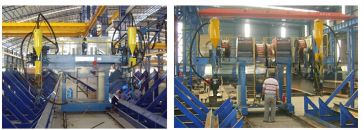 LHT welding machine used for h beam welding, with two welding torches whichcan do two welding seams at the same time. No limited for h beam web height,stable and high effective.