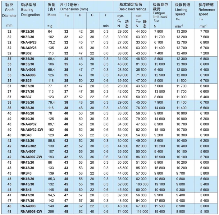 Needle Roller Bearings Without Inner Rings