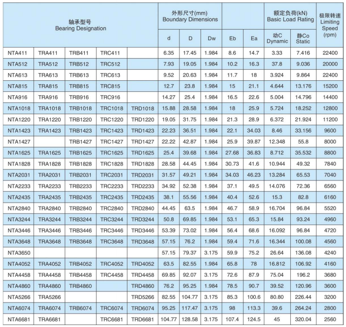 Thurst Needle Bearings and Washers Inch System