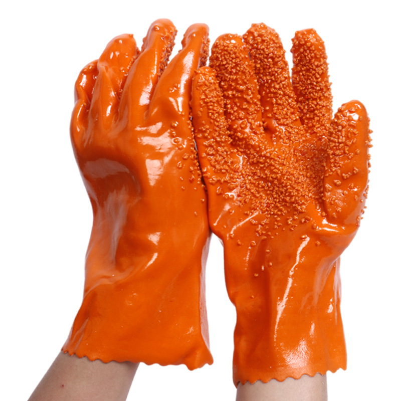 Non-slip frosted rubber waterproof gloves with acid and alkali resistance
