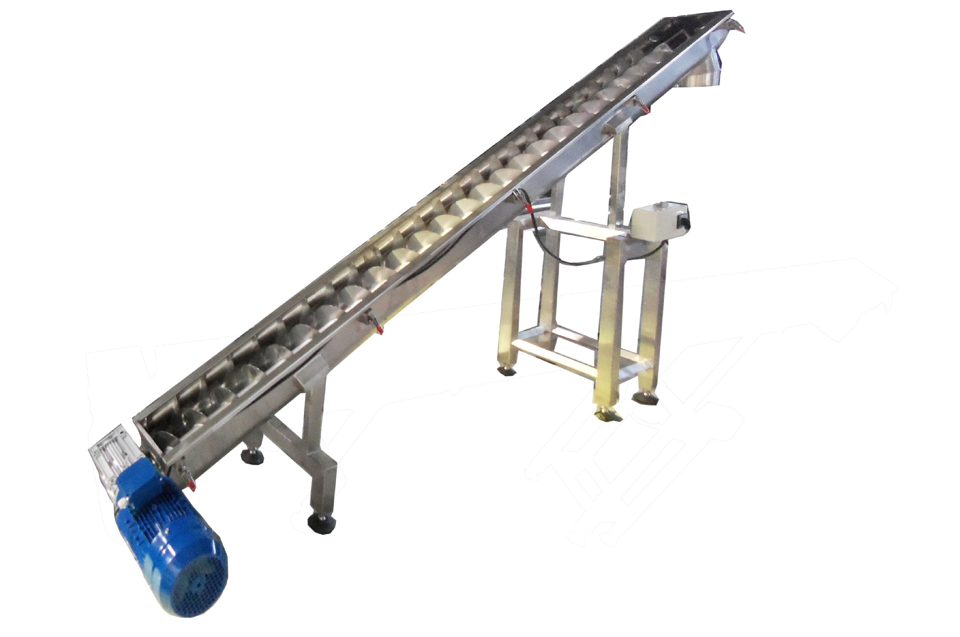 The feeding pipe is a U-shaped groove, on which there is a stainless steel arc cover, which is fastened with a buckle, and the middle is sealed with a sealing strip without powder leakage. Opening the cover can facilitate cleaning.