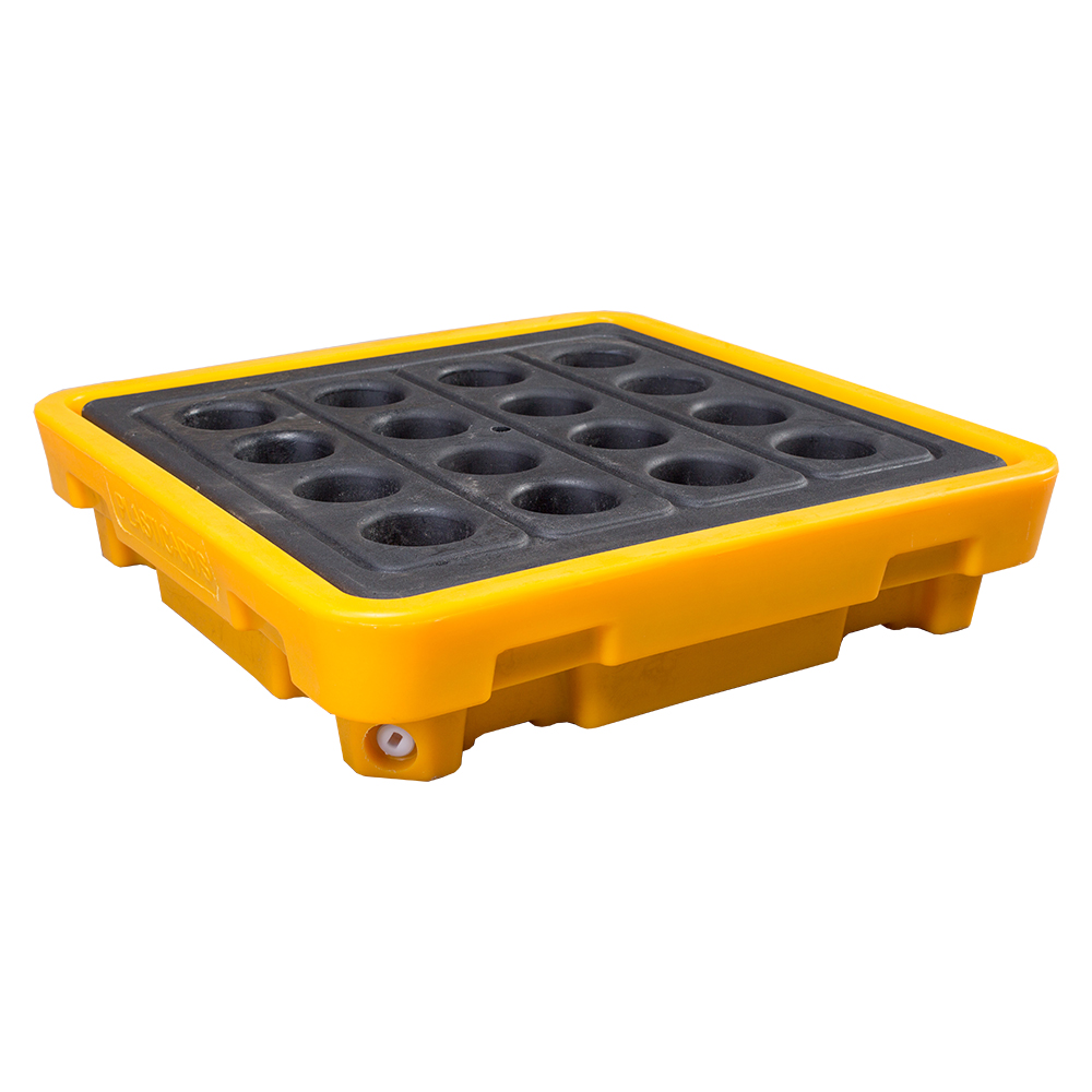 Drum spill pallet with built-in drain are made from 100% Polyethylene by injection molding.